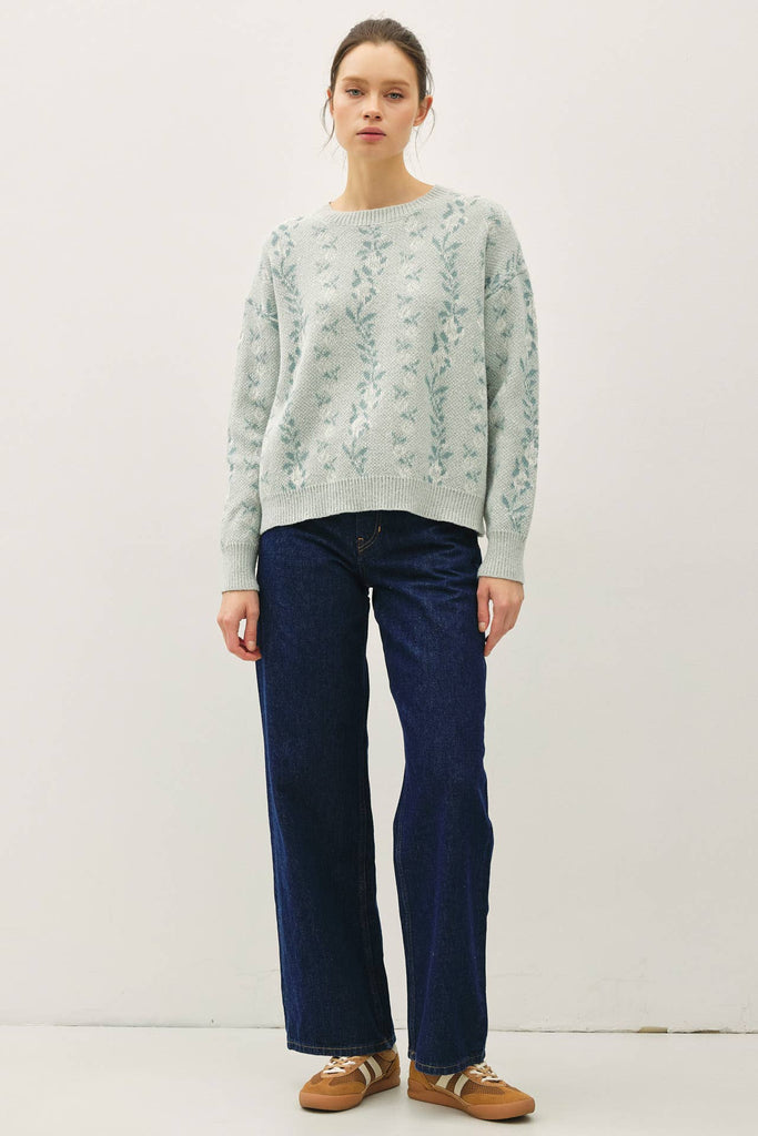 This sweater is pure charm—soft, boxy, and full of personality. The floral jacquard pattern adds a playful twist to classic stripes, while the drop shoulder fit keeps things relaxed and cozy. It’s the kind of pullover that makes you feel instantly styled, even if you’re just throwing it on.