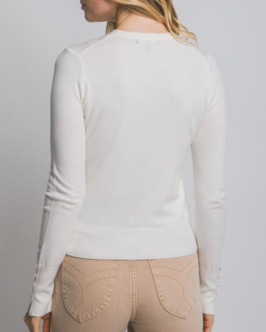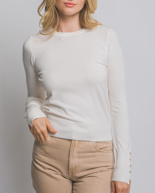 Cozy meets chic in this LT Fitted Golden Button Sleeve Sweater. Featuring a comfy crew neck and easy pull-over style, it’s designed with a fun split detail at the cuffs and shiny gold buttons that add just the right touch of sparkle. So soft you'll want to wear it every day! Perfect for adding a playful twist to your everyday look.