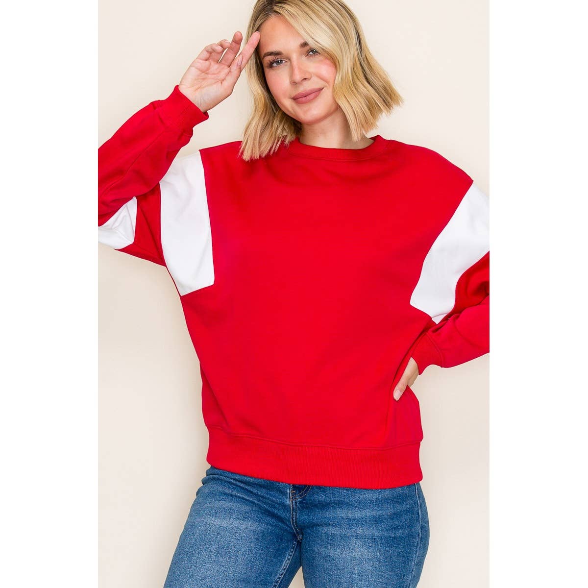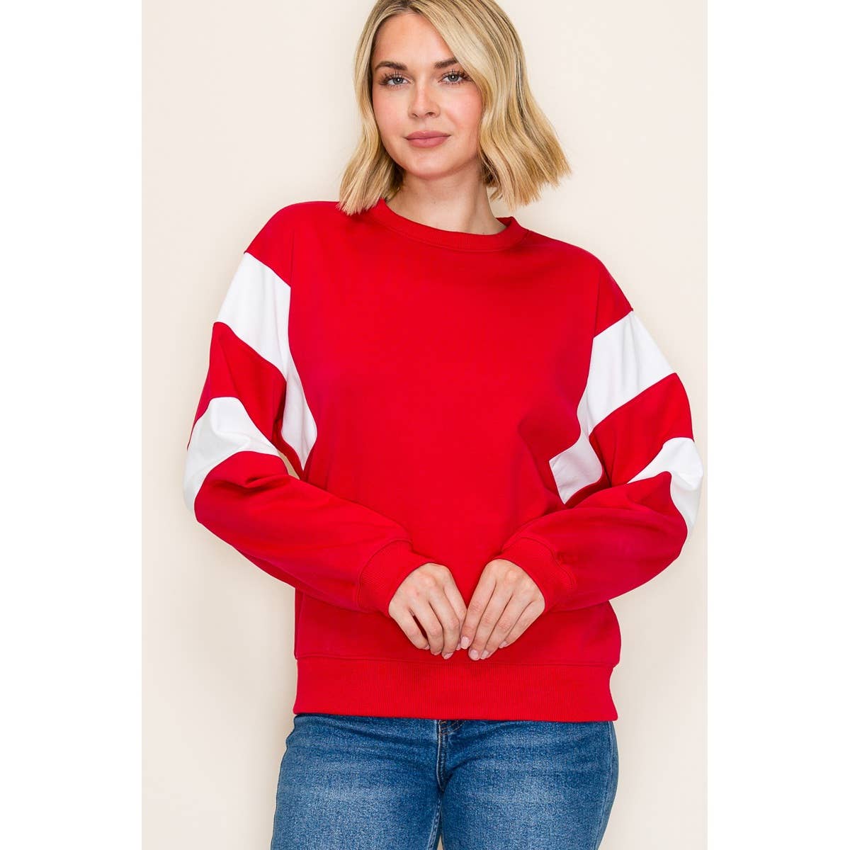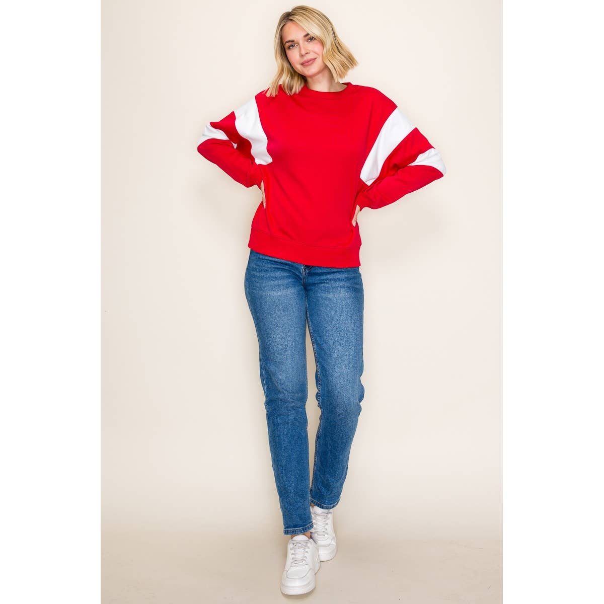 Sporty, cozy, and effortlessly chic — this varsity-inspired sweatshirt is the perfect blend of comfort and style. Designed with bold color blocking and a relaxed fit, it brings a playful edge to everyday wear. The soft knit fabric keeps you warm without bulk, while the classic crew neckline and ribbed trim add timeless appeal.